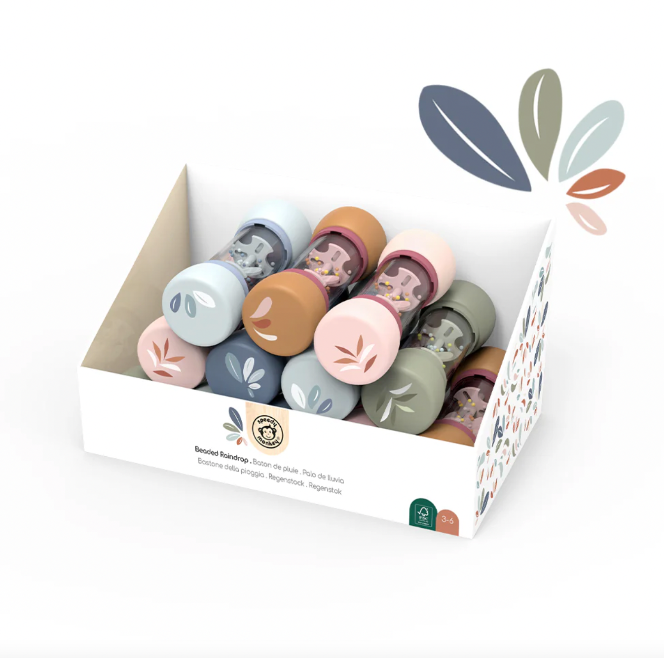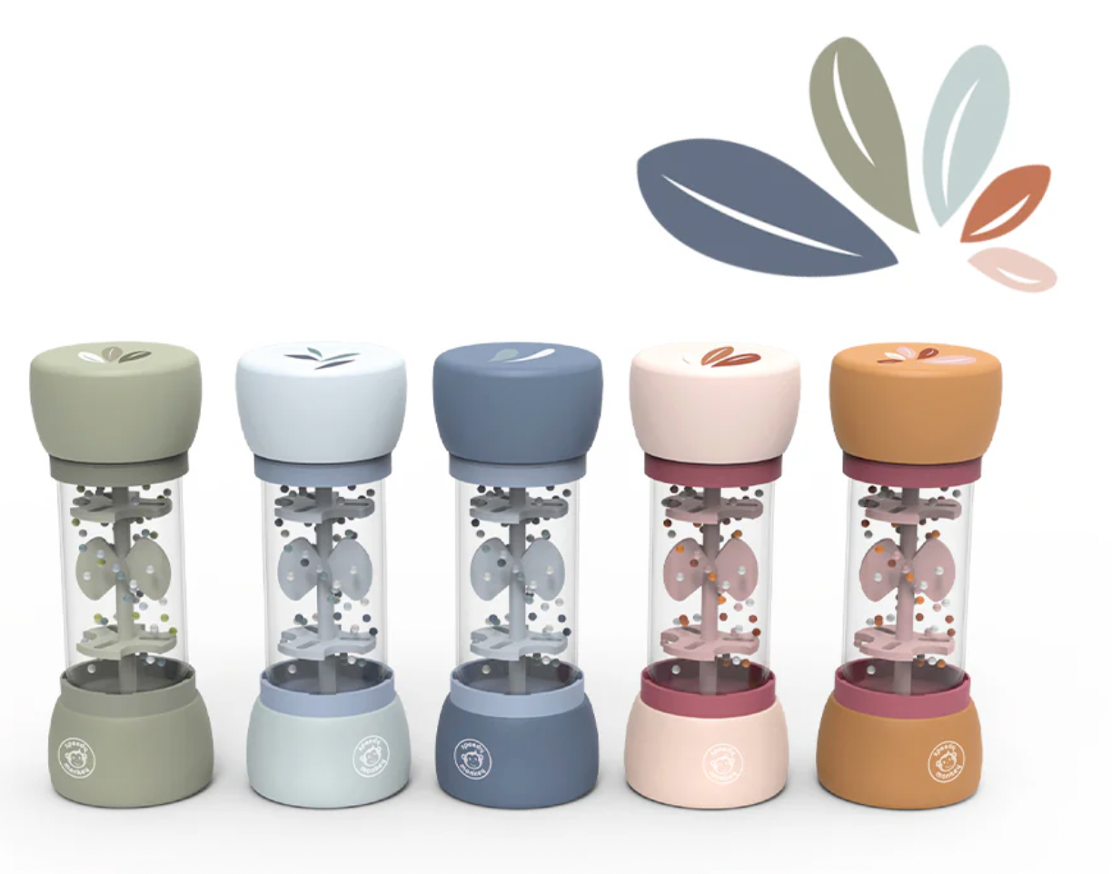 Con su diseño en forma de gota y cuentas multicolor, produce un sonido relajante que estimula los sentidos auditivos y despierta el amor por la música en los niños.