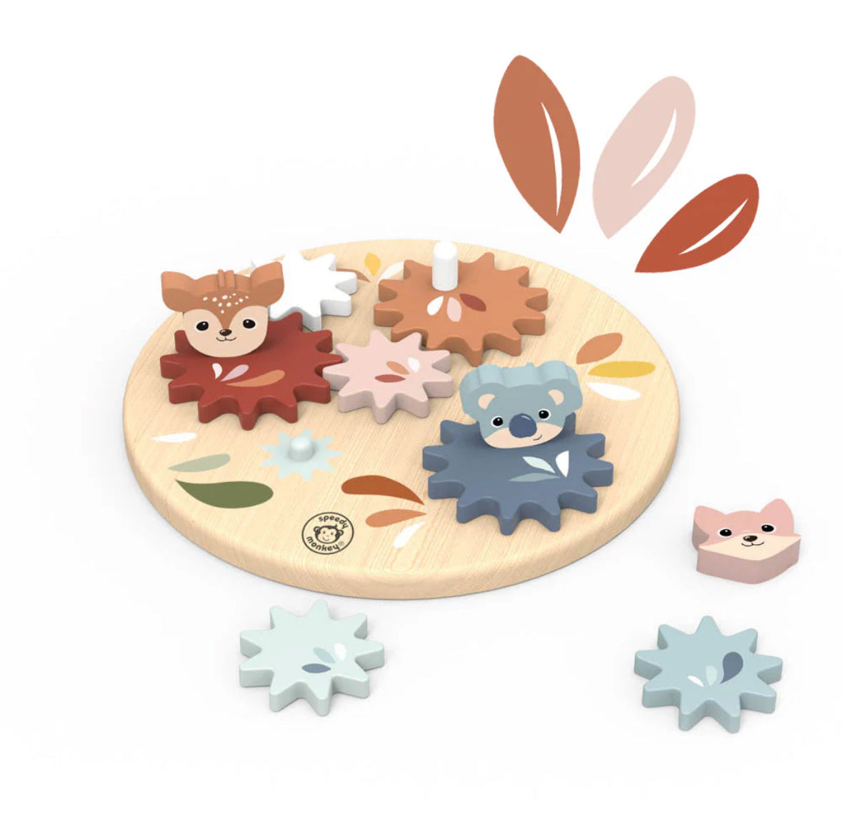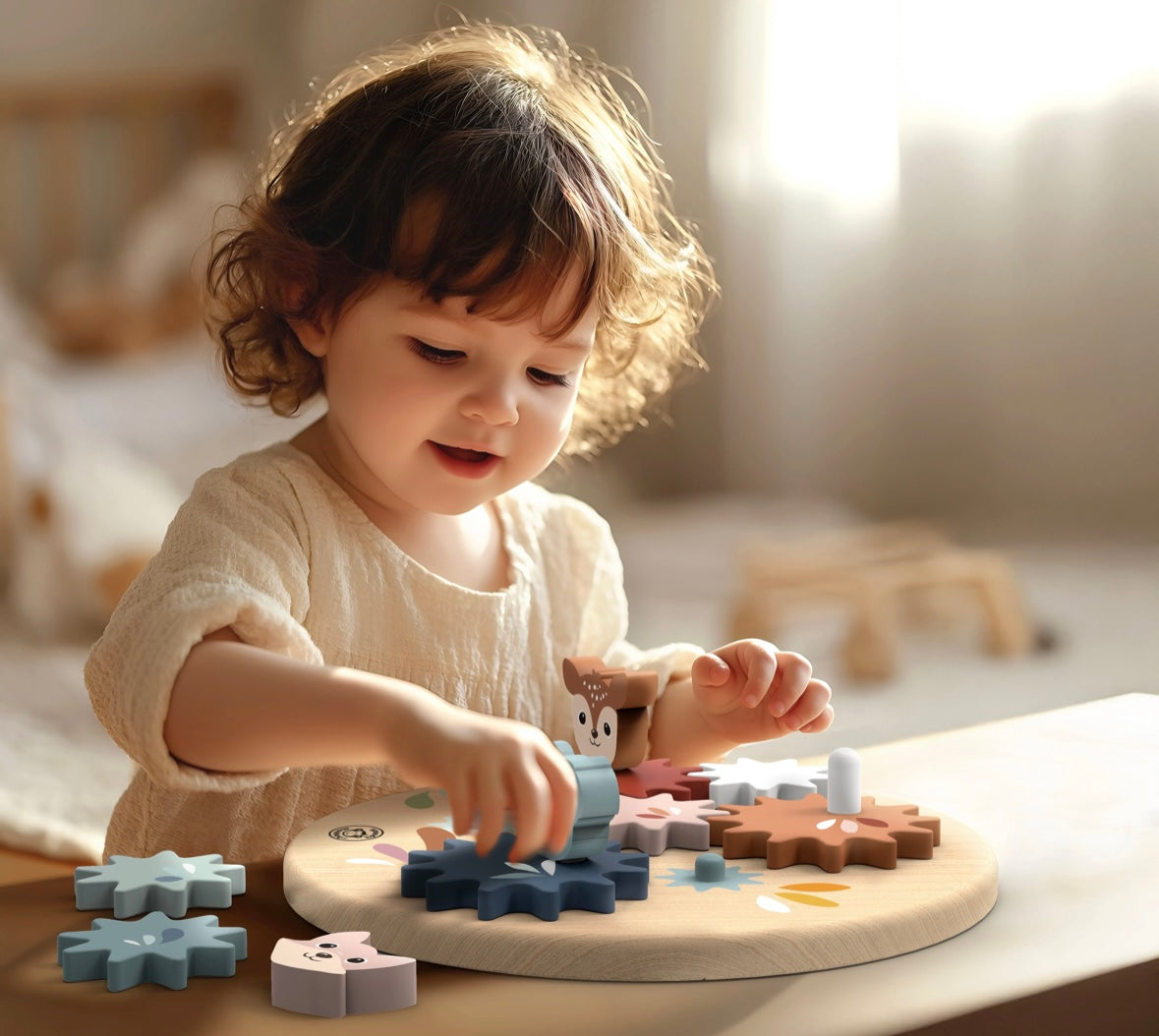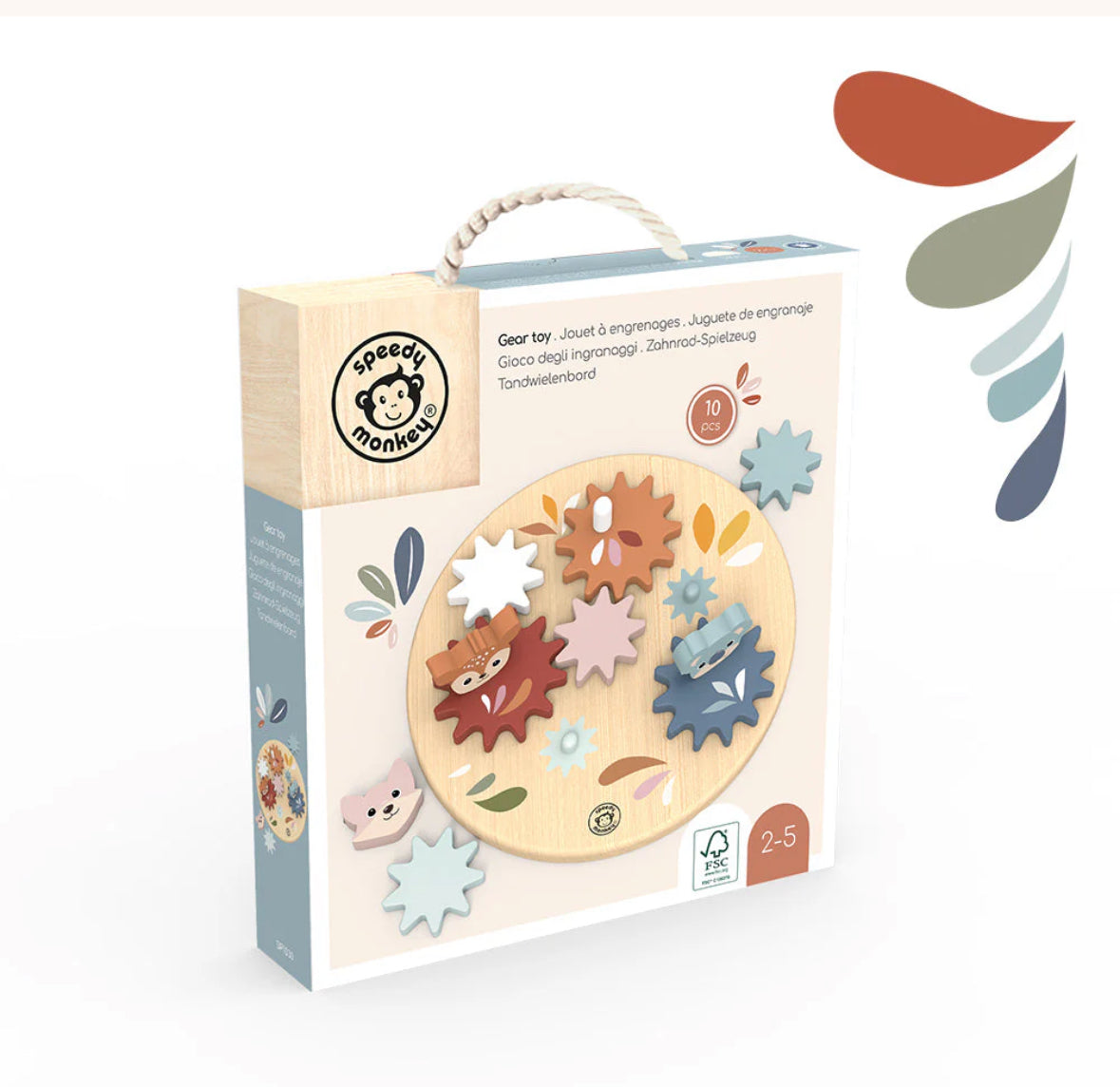 Un colorido juguete de madera interactivo que combina diversión y aprendizaje. Fomenta la coordinación, la motricidad fina y la resolución de problemas mientras los niños descubren cómo giran e interactúan los engranajes.