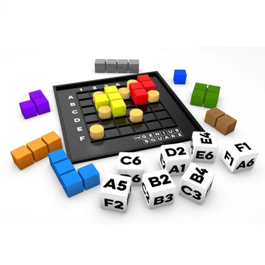 ¡Pon a prueba tu rapidez mental! En Genius Square, los jugadores compiten por resolver el rompecabezas antes que su oponente. Lanza los dados, coloca los 7 bloqueadores según el resultado y completa el cuadrado usando las 9 piezas. Si ganas, subes al siguiente nivel… ¡el primero en completar los 5 niveles es el campeón!