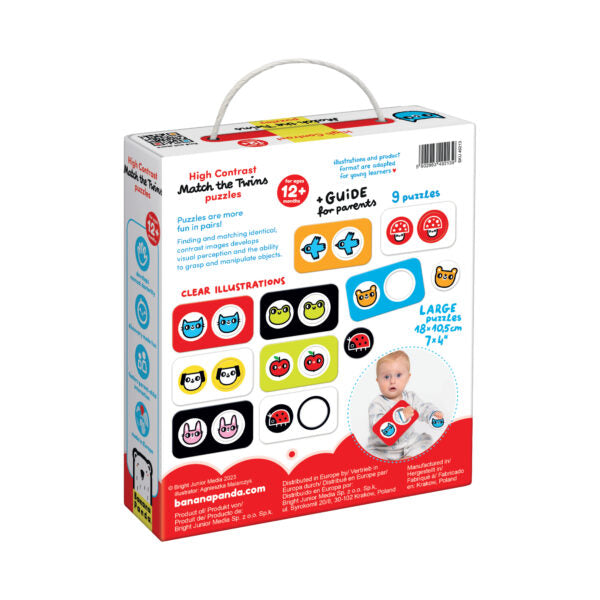 ¡El regalo perfecto para un bebé de 1 año! Este set incluye 9 rompecabezas grandes de alto contraste con encantadoras ilustraciones que estimulan el desarrollo cognitivo, motor y emocional.