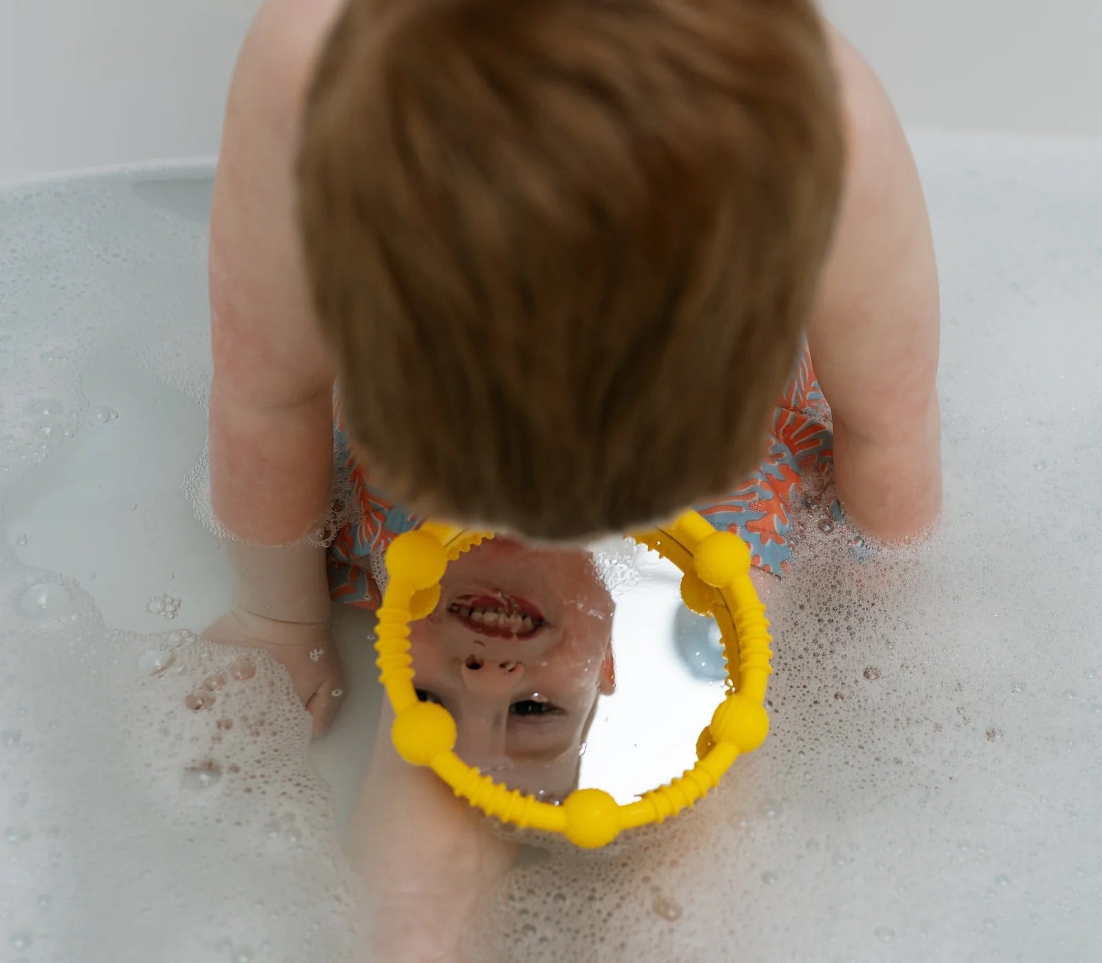 ¡Convierte la hora del baño en una aventura llena de risas y descubrimientos! Este espejo sensorial brillante permite que los bebés exploren su reflejo mientras disfrutan del agua, estimulando la curiosidad y el juego interactivo.