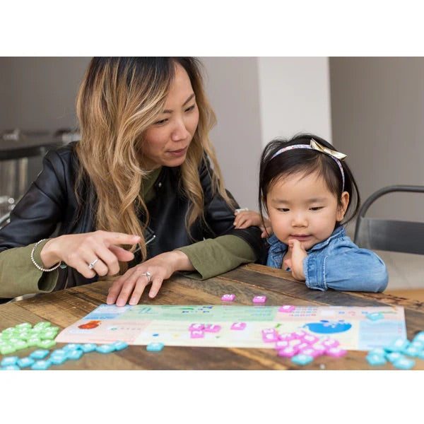 Fichas brillantes, suaves y lavables que enseñan suma y resta de manera práctica. Sin pantallas, sin baterías: fomenta pensamiento lógico, juego activo y momentos en familia.