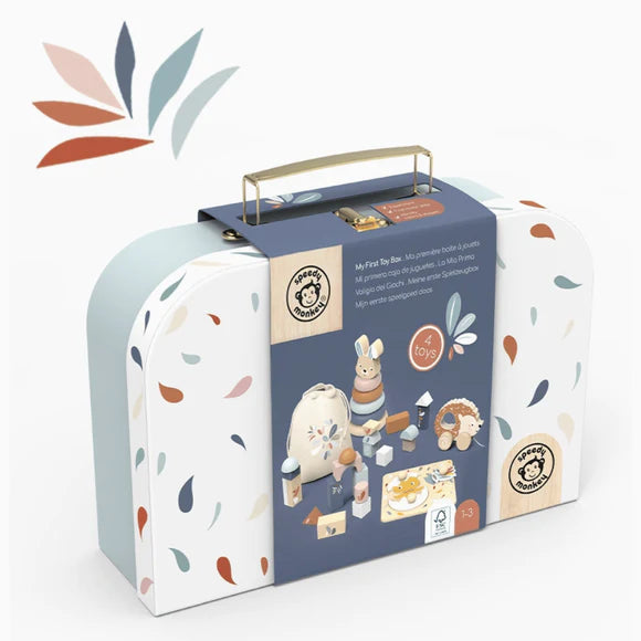 Mi Primera Maleta de Juguetes es la maleta introductoria con juegos simples, diferentes y creativos que ofrece al niño horas de entretenimiento. Incluye: bloques, rompecabezas, conejo apilable y erizo para arrastrar.