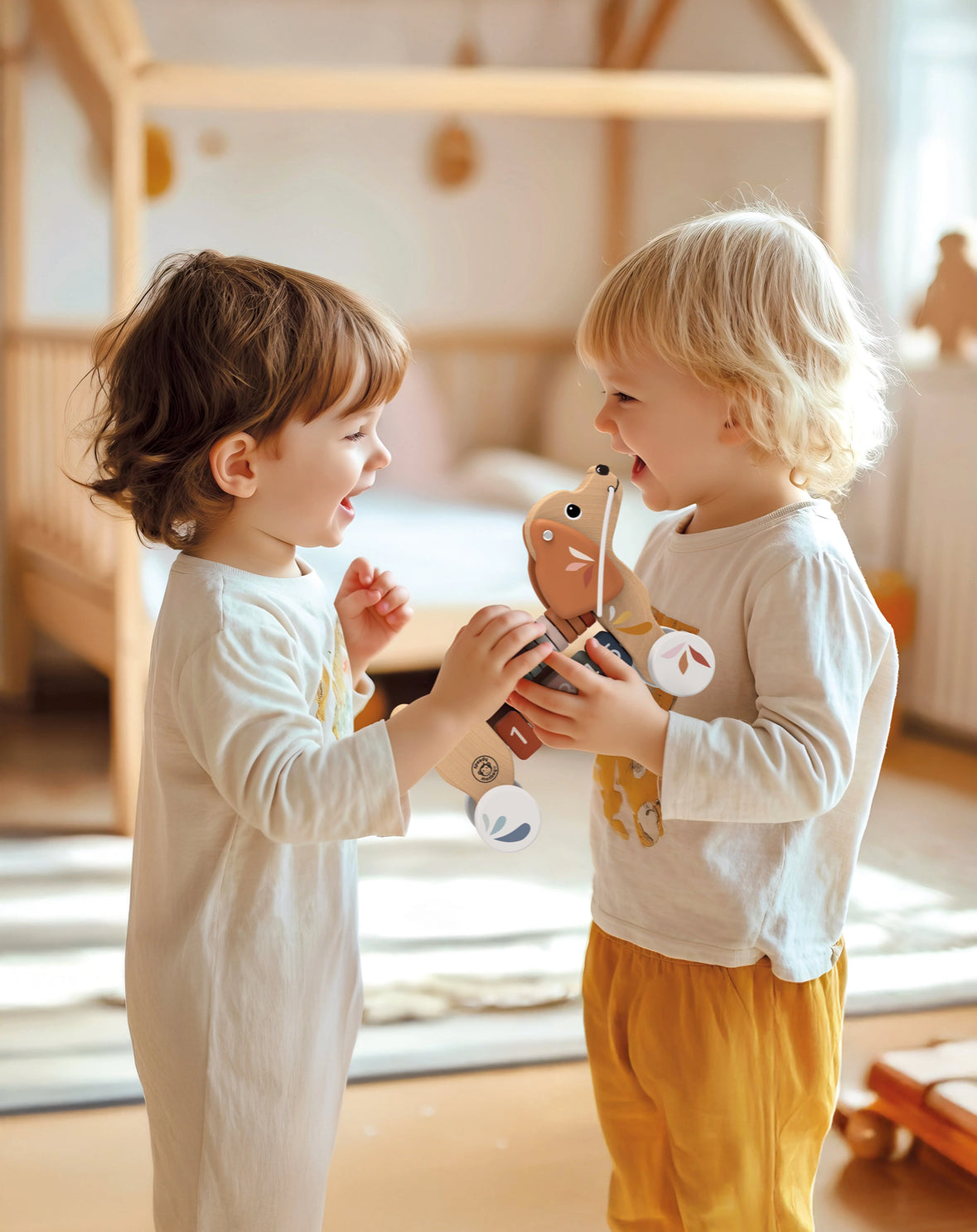 Perfecto desde los 12 meses, estimula el equilibrio, la coordinación y el desarrollo motor grueso, mientras invita al juego imaginativo. Con su práctica cuerda de arrastre, los niños pueden llevarlo a todas partes, dentro o fuera de casa.