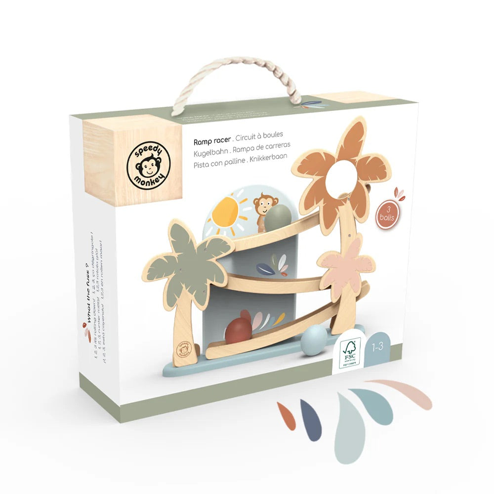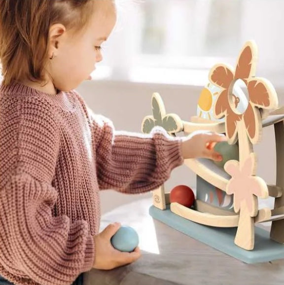 Los pequeños disfrutarán viendo rodar las tres bolas por la rampa hasta salir disparadas al final. Un juego que ofrece horas de diversión mientras desarrolla la motricidad fina, la coordinación ojo-mano y el reconocimiento de colores.