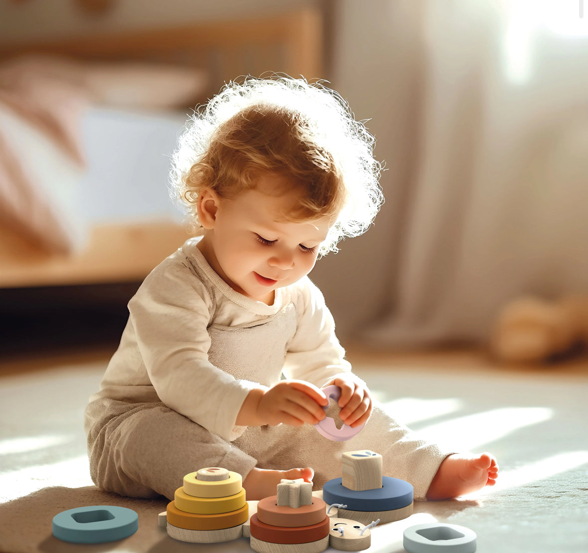 Un encantador juguete de madera que combina aprendizaje y diversión. Con su diseño colorido de caracol, incluye 9 aros multicolores para apilar en la espiral de su concha, ayudando a los niños a reconocer colores, contar y desarrollar la motricidad fina.